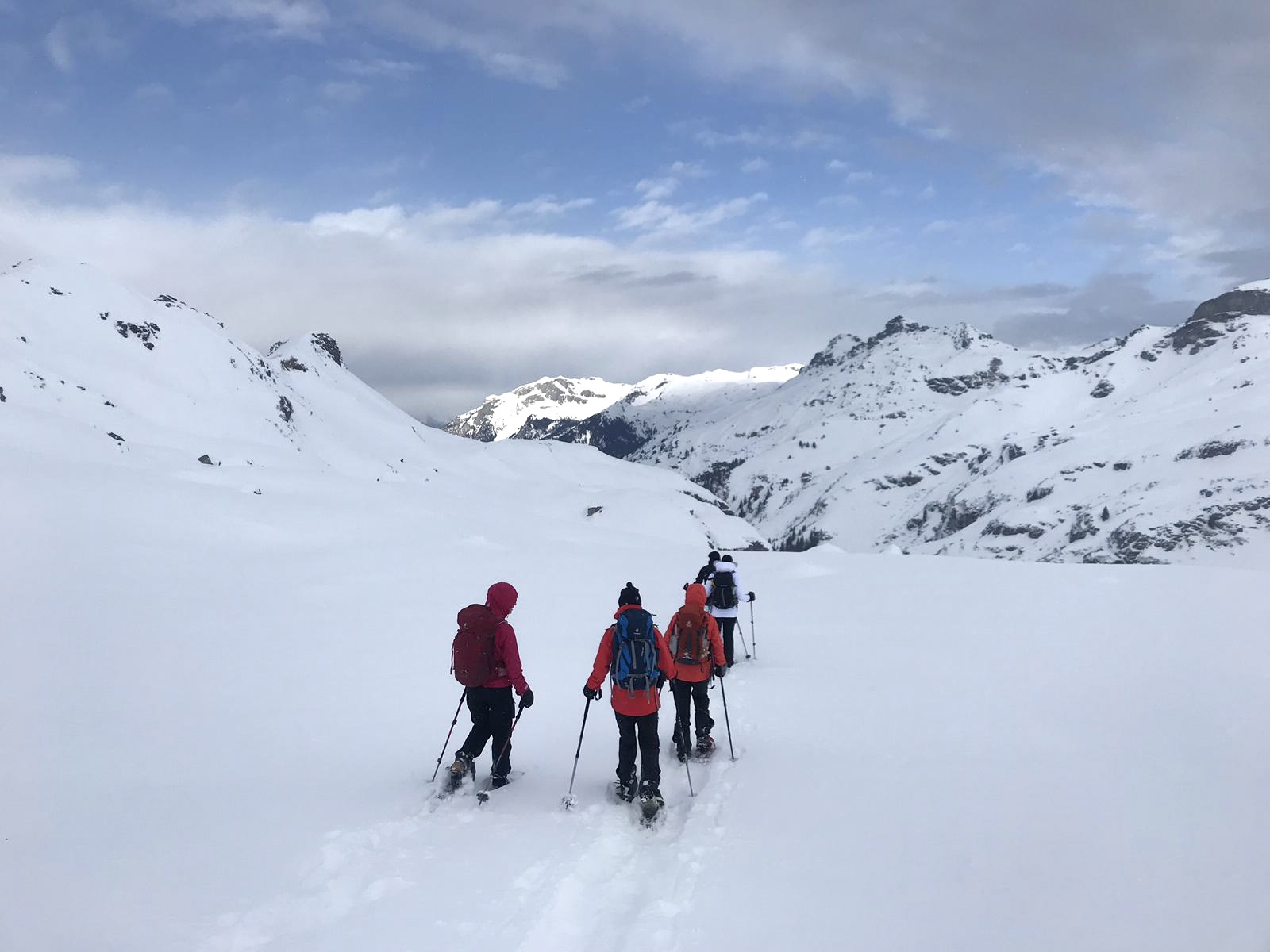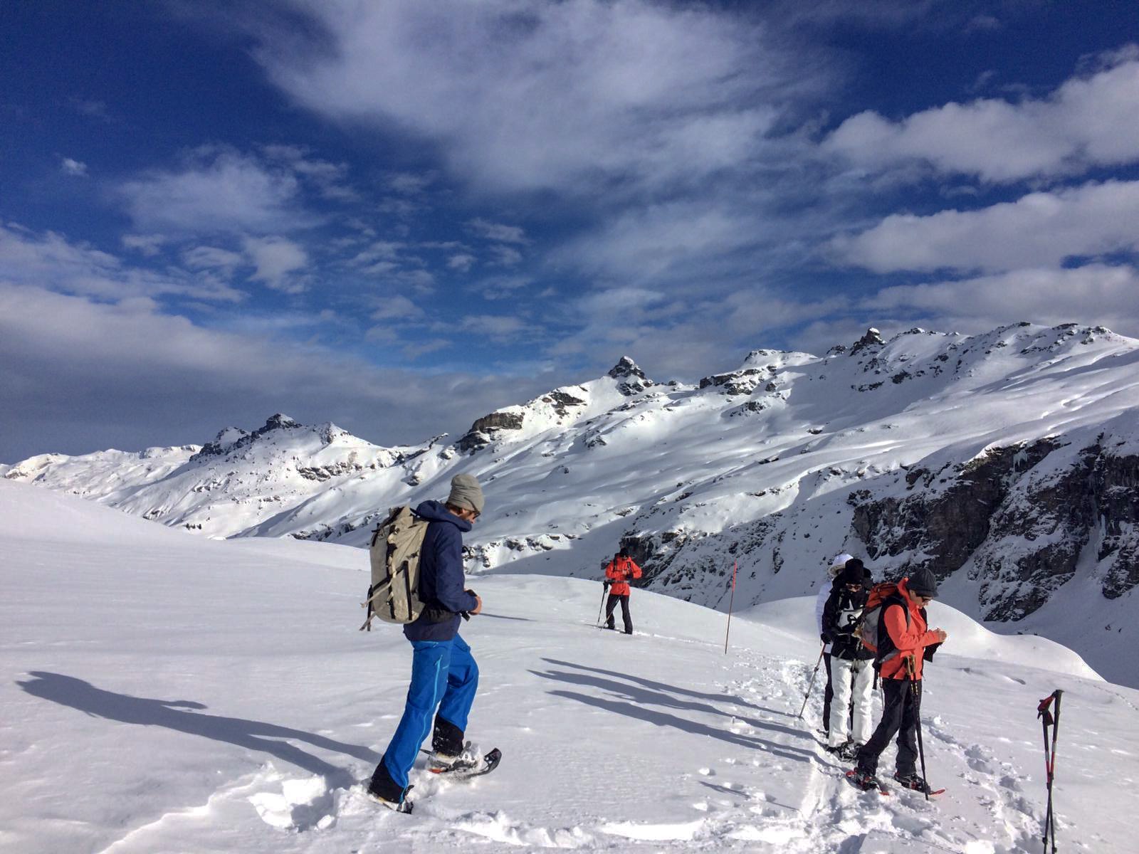 Mit den Schneeschuhen laufen wir durch das verschneite Wildschutzgebiet Kärpf, bis wir nach drei gemütlichen Stunden in der Leglerhütte ankommen. Es erwartet uns ein feines Znacht und eine wunderschöne Abendstimmung – Hüttenromantik pur. Am nächsten Morgen werden mit etwas Glück von mächtigen Steinböcken verabschiedet.